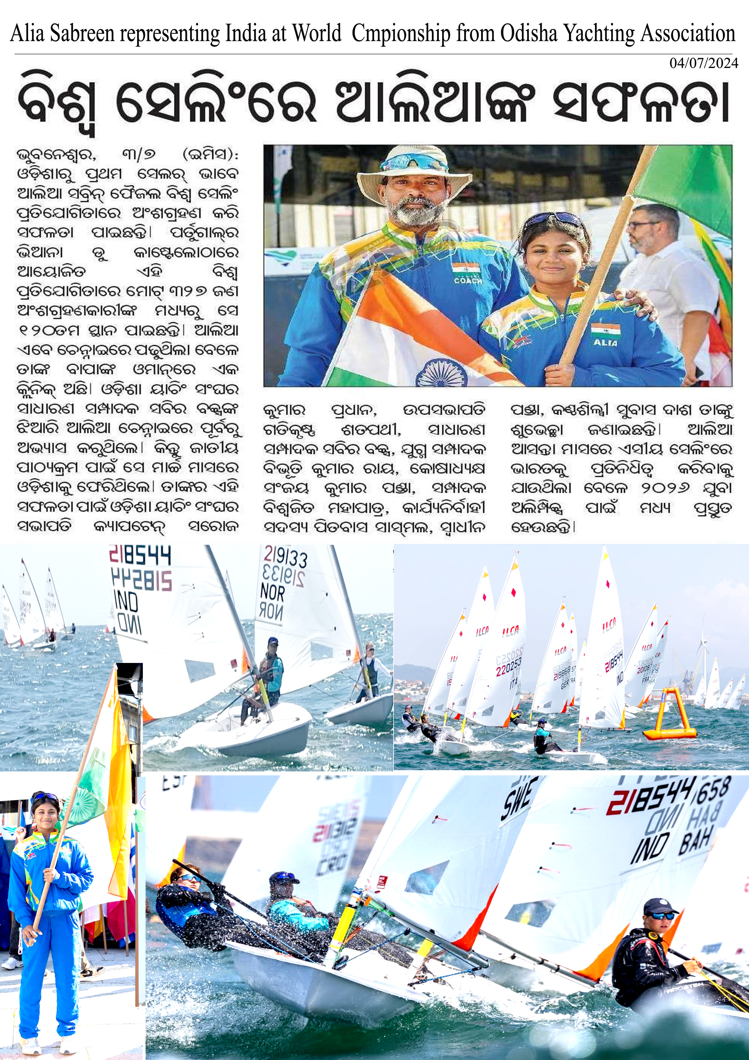 "Miss Alia Sabreen: The First Oya Sailor to Represent Odisha at the World Sailing Championship in Portugal"