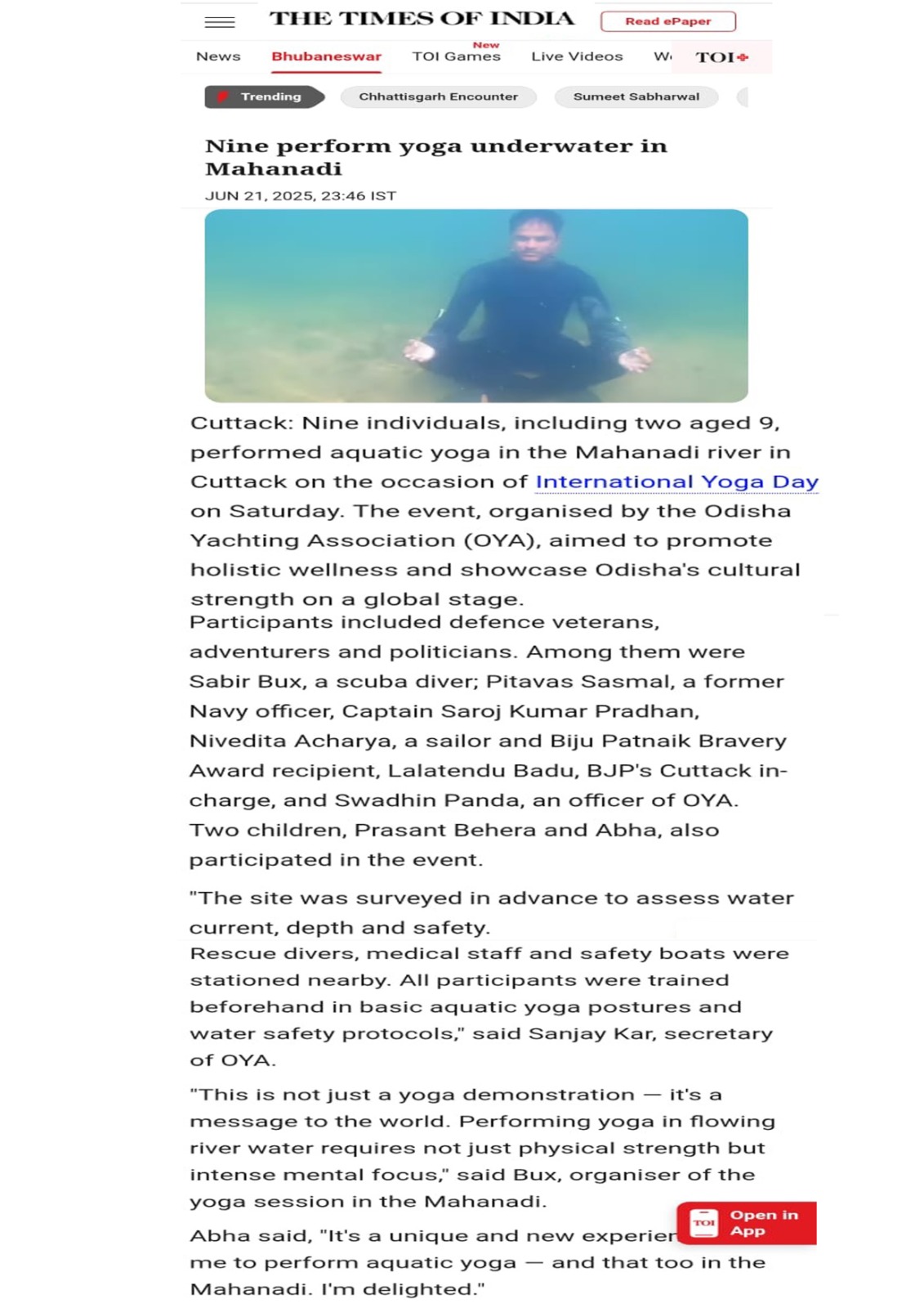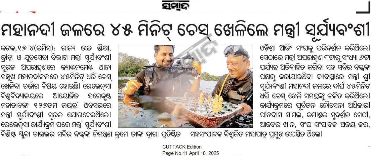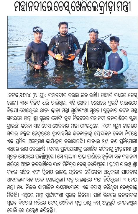 Honourable Sports Minister Sri.Suryabanshi Suraj dived with OYA team