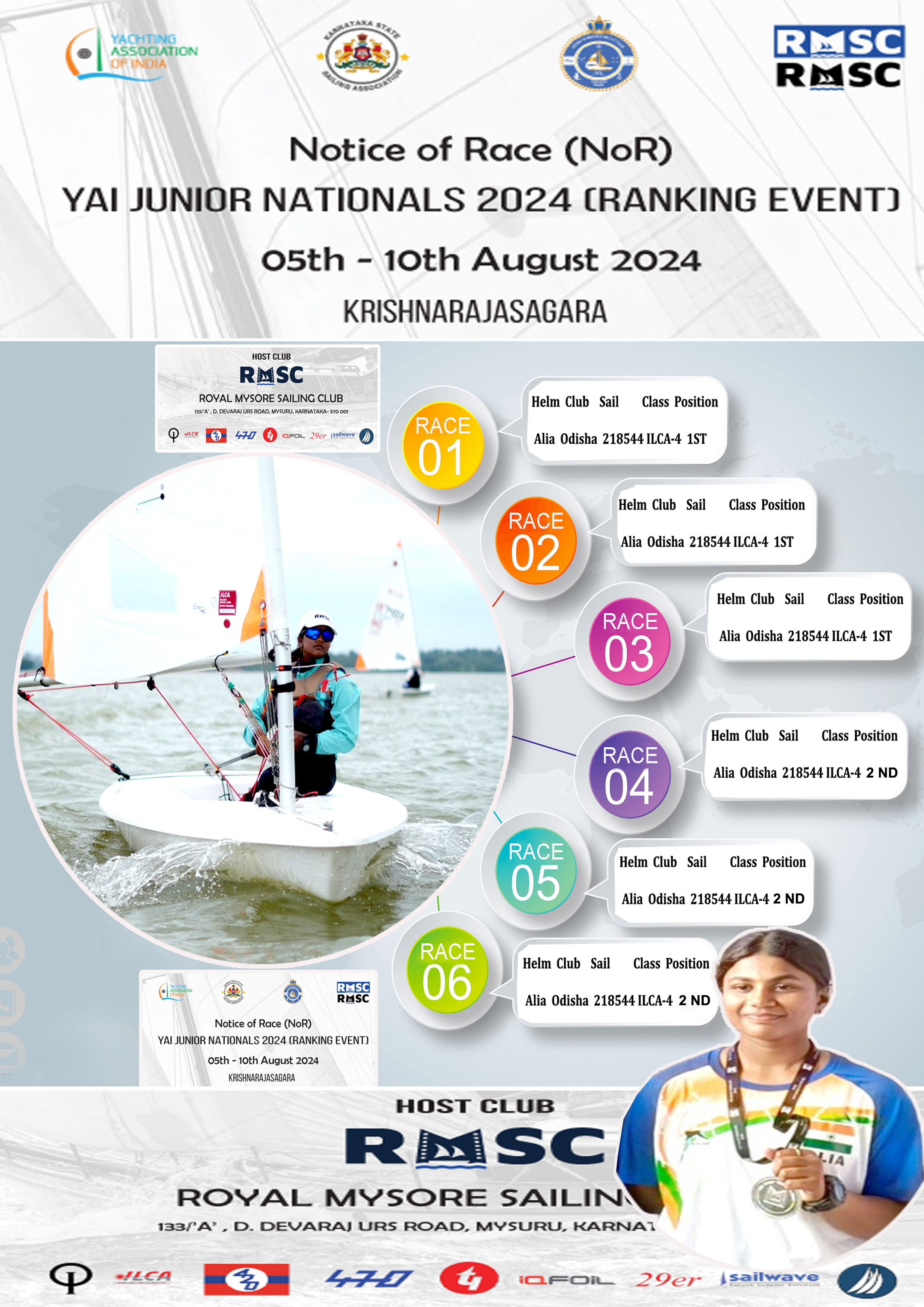 "Young ILCA Sailor Miss Alia Sabreen Secures Silver Medal at YAI Junior National Sailing Championship in Mysore"