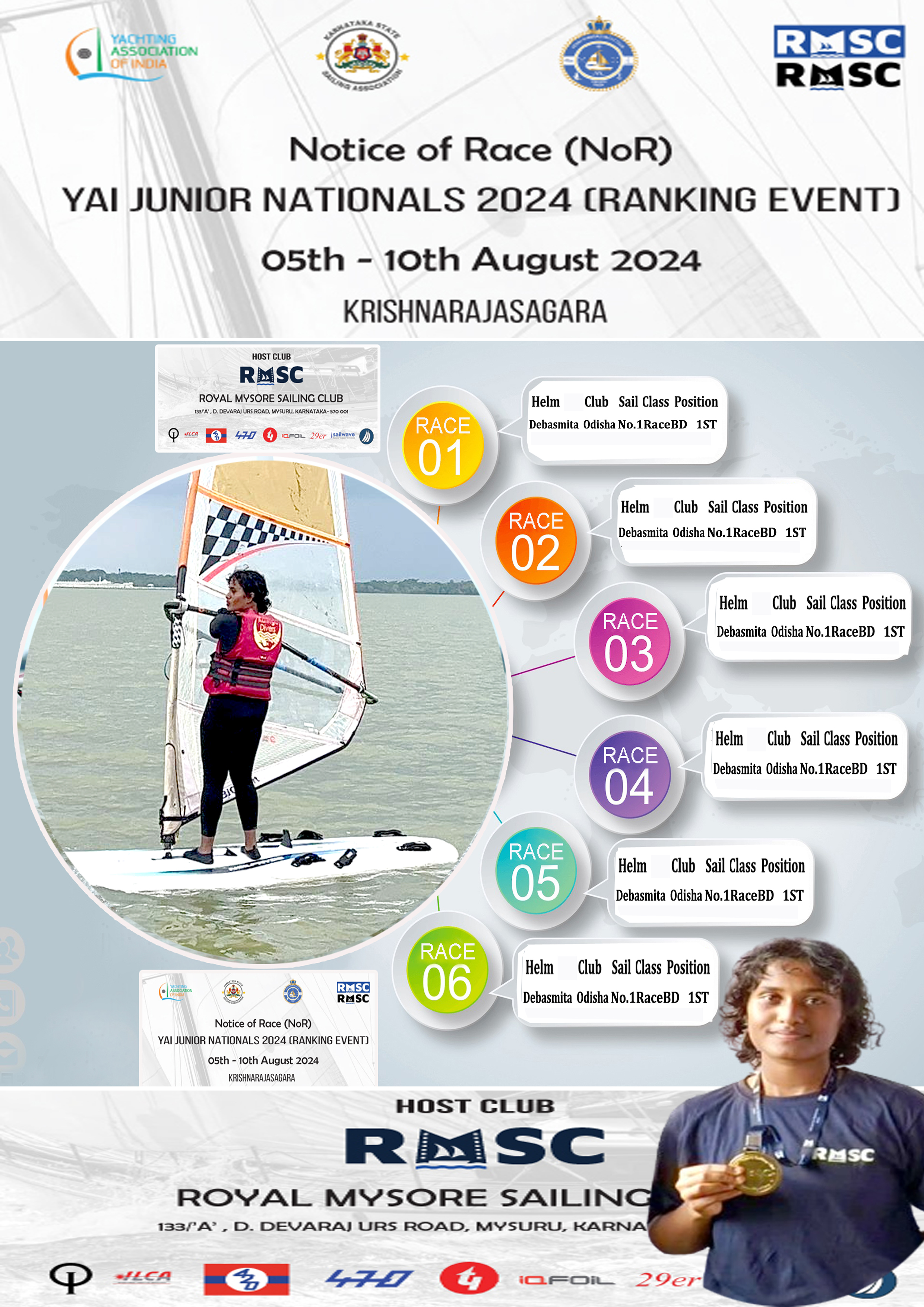 "Windsurfer Miss Debasmita Kar Secures Gold Medal at YAI Junior National Sailing Championship in Mysore"