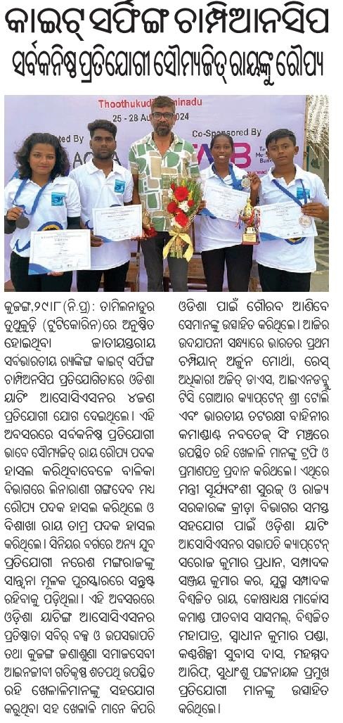 "A Proud Moment for OYA: Winning 3 Medals in Odisha’s First Kite Surfing Competition at Tuticorin"
